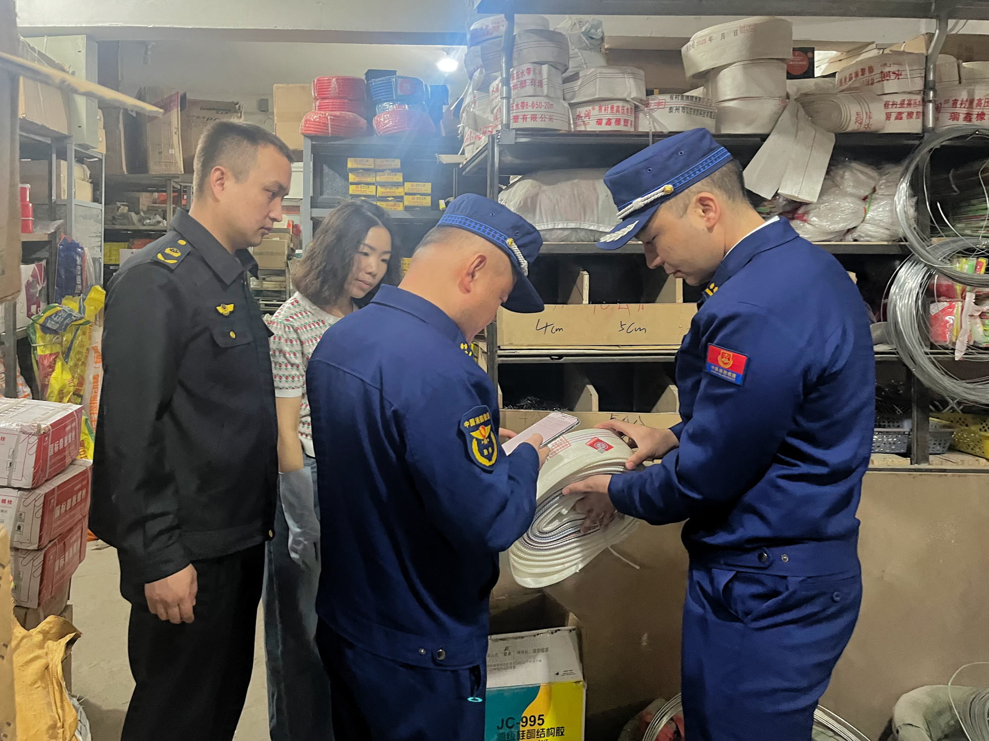 阿拉山口市消防救援大队联合阿拉山口市市场监督管理局共同开展消防产品专项检查。